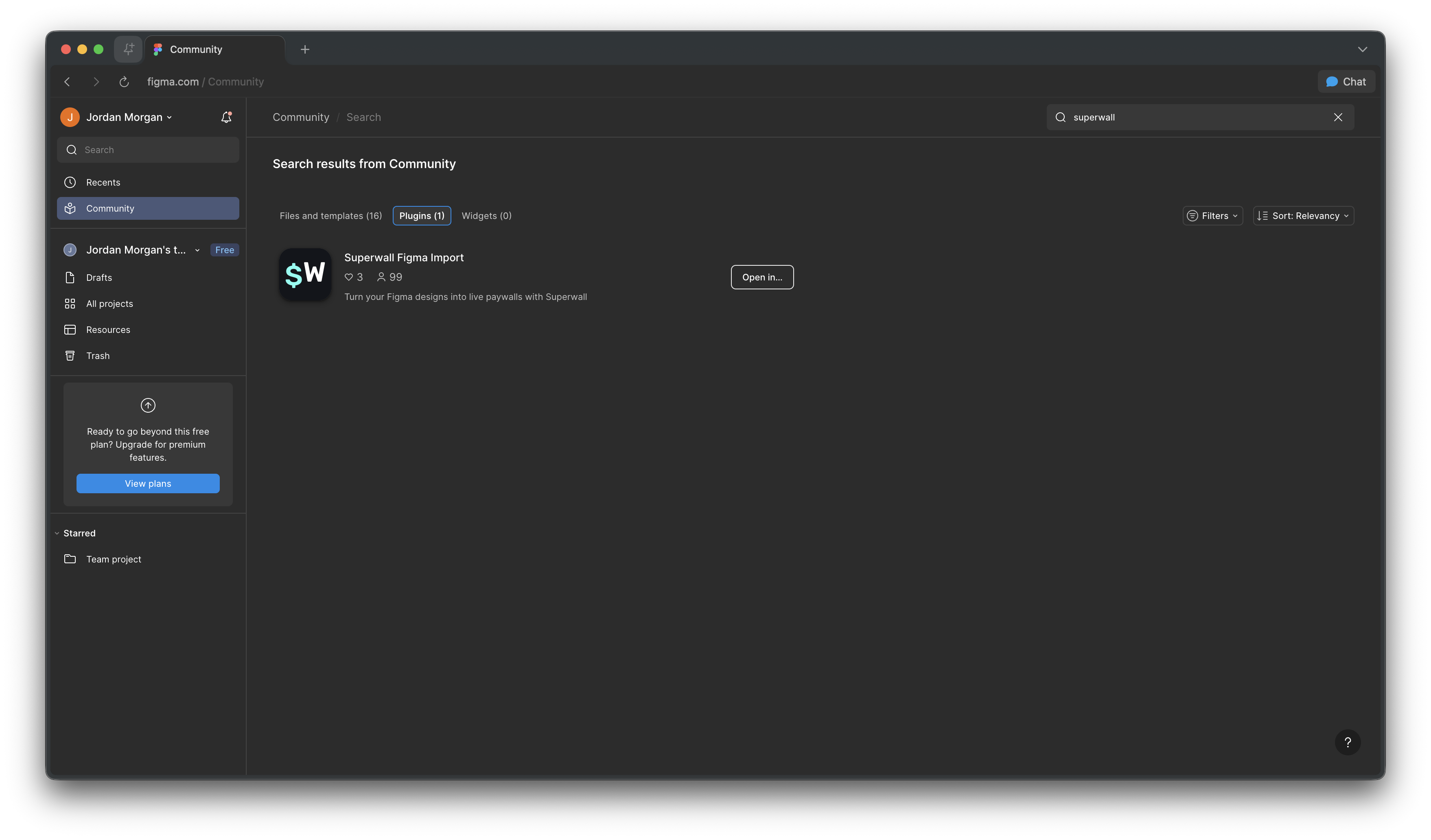 The Superwall Figma Import plugin lives right inside Figma's plugin community. Simply search for "Superwall" and the plugin should show up: