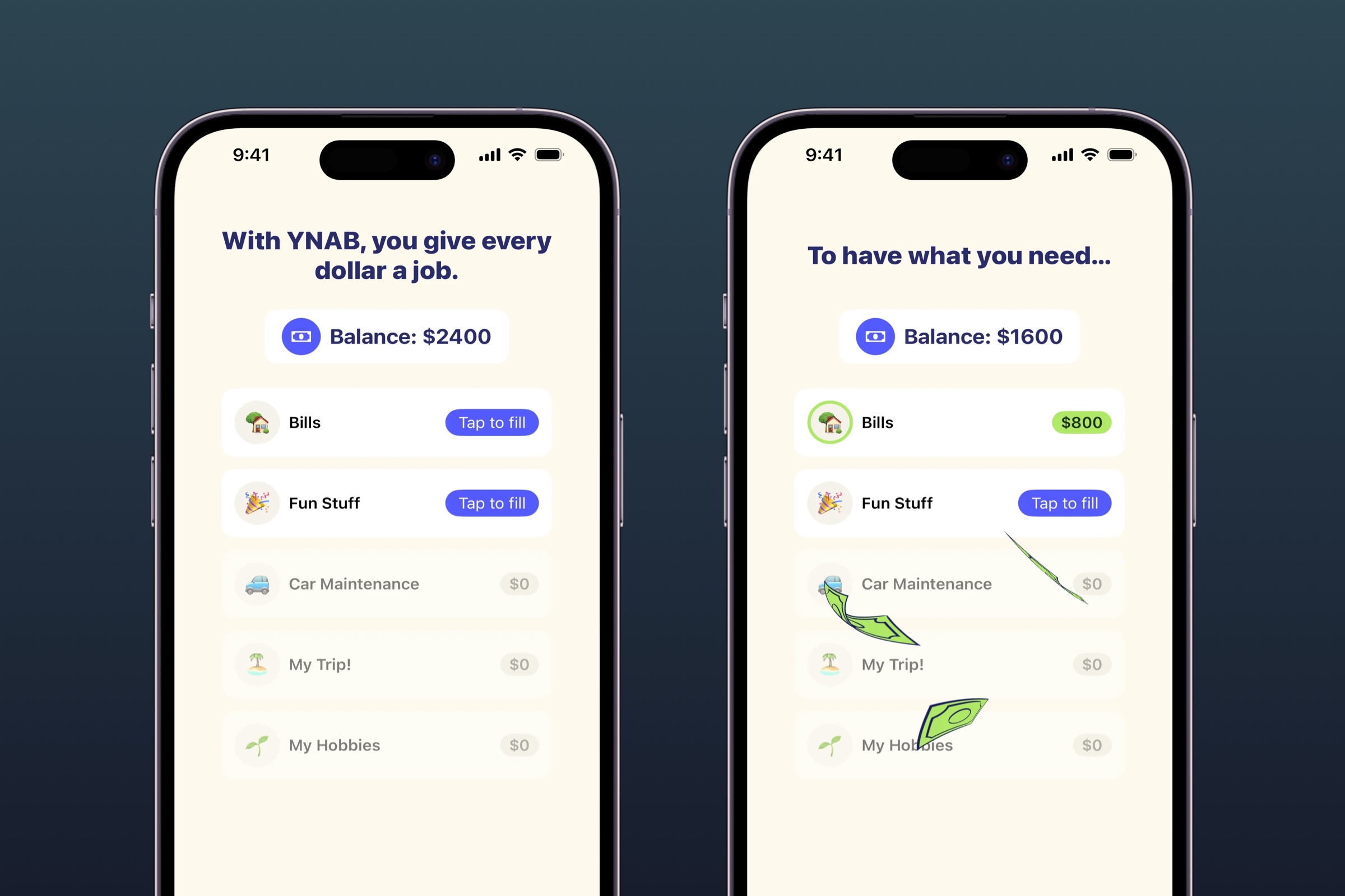 Proxy moments showcase what will happen, or preview an expected outcome, if they keep using your app. For example, in a finance app, preview the result of sticking to a plan. One app that does this well? YNAB. In the onboarding, YNAB (which stands for "You need a budget") walks through how your money will work, and why it'll be better using their tools: